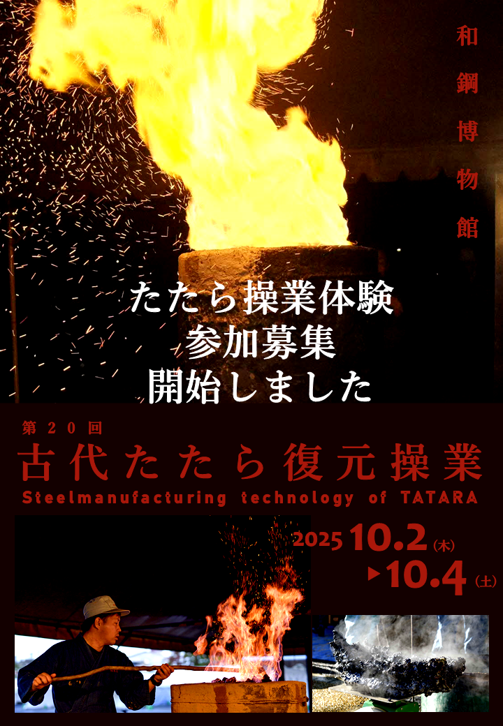 たたら製鉄を起点とする歴史・産業・文化に関する知識を高めるとともに、会員相互の親睦を図りながら和鋼博物館が行う活動を支援し、その普及発展に寄与することを目的として活動しています。