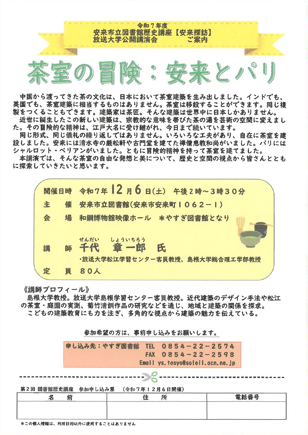 安来探訪「茶室の冒険:安来とパリ」 が開催されます